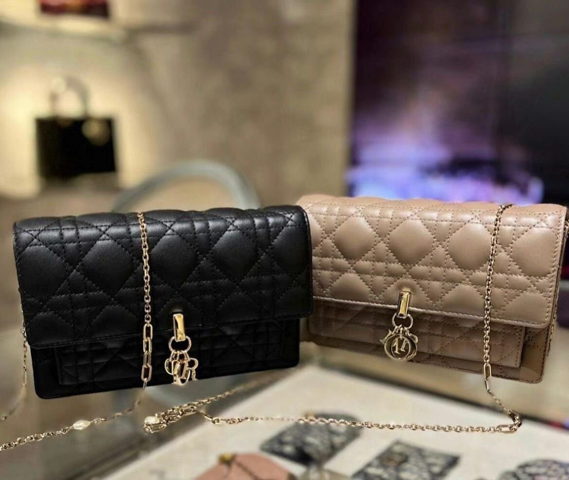The pouch features the signature Cannage quilting, inspired by Napoleon III chairs, impeccably stitched to create a texture of timeless luxury. The polished ‘CD’ clasp, a modern icon of the House, sits proudly at the front, finished with a flawless, weighty feel. The adjustable chain strap, elegantly woven with leather, allows for versatile wear as a chic shoulder bag or a compact crossbody.