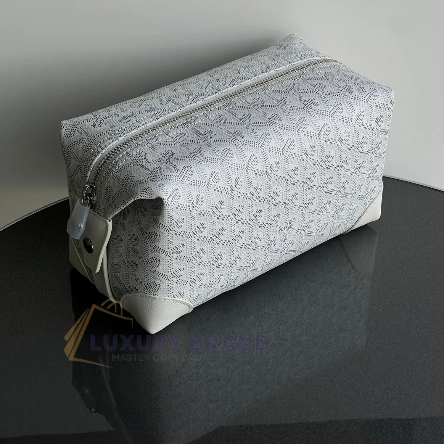 The GOYARD Boeing Travel Bag in patent leather. Super master quality replica featuring the iconic hand-painted Chevron pattern, glossy finish, and spacious interior. The ultimate statement for the sophisticated traveler.