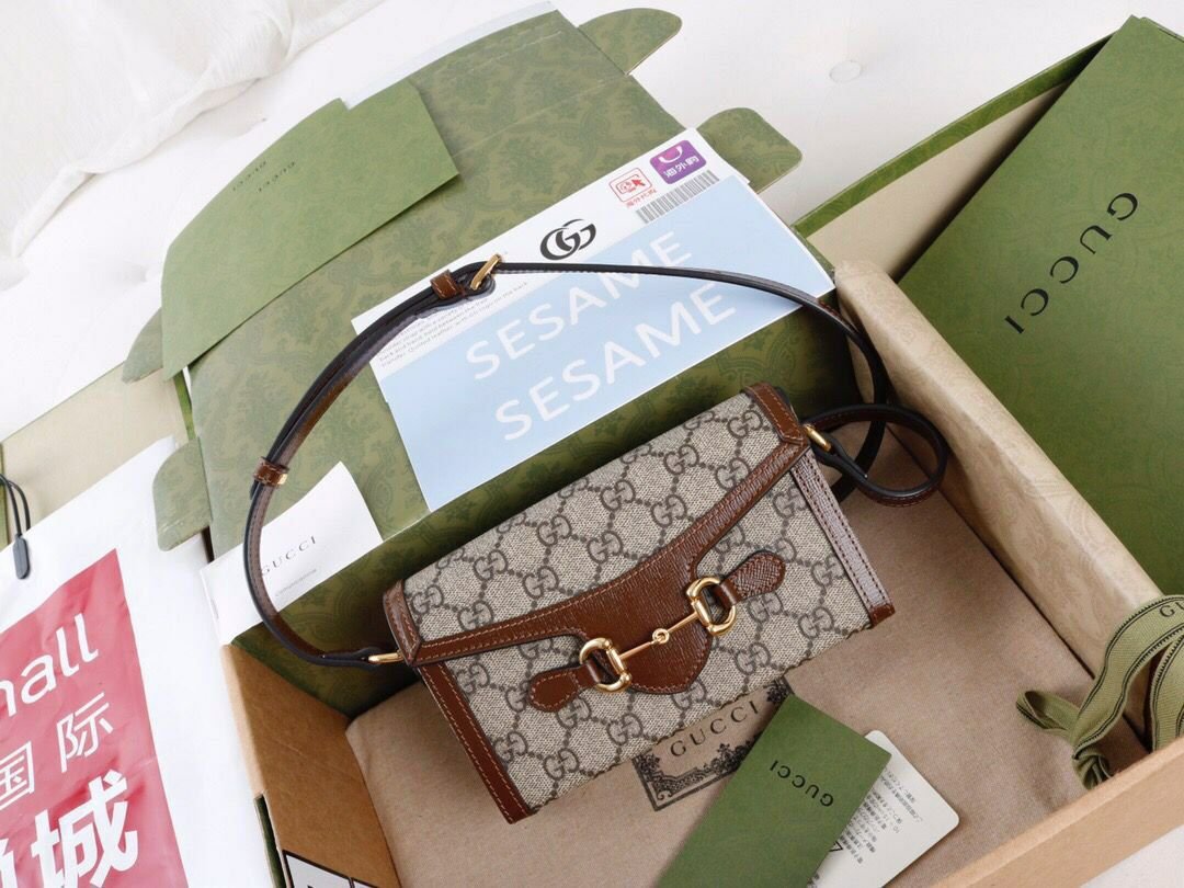 Crafted from the unmistakable GG Supreme canvas—a timeless signature of the House—the bag is elegantly trimmed with supple beige leather. The defining feature, a polished gold-toned Horsebit, serves as both a functional closure and a striking hardware detail, paying homage to Gucci’s storied beginnings.