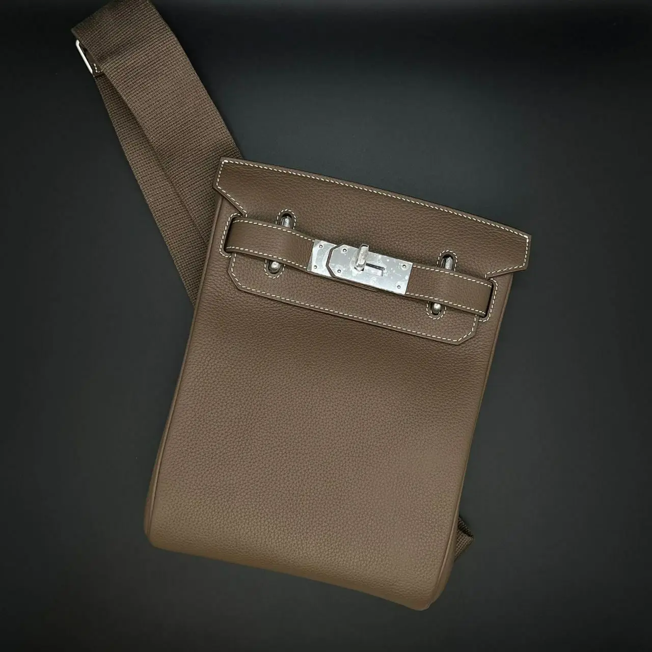 Iconic Silhouette: The structured trapezoid shape and elegant single strap uphold the Kelly’s legacy of sophisticated functionality.