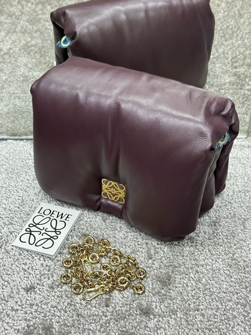 The LOEWE Goya Puffer Bag is a luxurious statement piece that blends avant-garde design with impeccable craftsmanship. Made from premium quilted leather, this puffer bag exudes sophistication with its sleek silhouette, signature LOEWE branding, and spacious interior. The padded structure ensures a soft yet structured look, while the adjustable shoulder strap offers versatile styling options—wear it crossbody for a casual-chic vibe or handheld for an elegant touch. Perfect for fashion enthusiasts who appreciate high-end accessories, the Goya Puffer Bag combines functionality with runway-ready appeal.