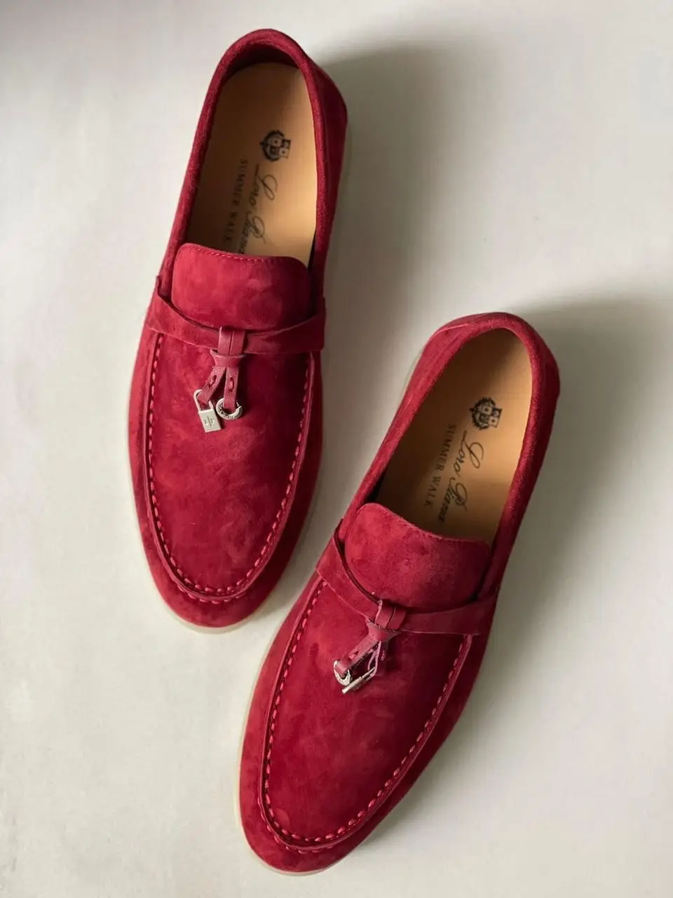Indulge in the timeless elegance of the LORO PIANA Summer Charms Walk Loafer, crafted from luxurious 100% suede for a soft, sophisticated finish. These iconic loafers feature delicate nappa leather piping and signature suede saddles adorned with the exclusive Loro Piana My Charms, adding a personalized touch to your style. Designed for both comfort and refinement, the non-slip rubber sole boasts the iconic LP monogram, ensuring stability with every step. A dedicated space on the heel allows for personalization, making these loafers uniquely yours. Meticulously handmade in Italy, they embody the perfect blend of artisanal craftsmanship and modern functionality. For care, gently brush the suede along the nap direction and avoid exposure to harsh elements to maintain their distinctive appearance